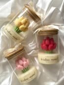 Lumânarea Tulip Bloom este creată special pentru 8 Martie și aduce frumusețea primăverii în casa ta. Stratul subțire alb de la bază face ca buchețelul de lalele colorate să pară că răsare natural din lumânare. Include mesajul „Te iubesc, mama” și vine ambalată direct cadou, cu capac, fundiță și sticker deja inscripționat „La mulți ani de Ziua Mamei”.